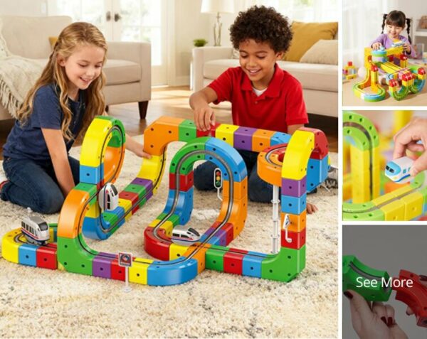 Every build is different, and that’s the point. As they twist the tracks into new configurations, they’re quietly developing spatial thinking, engineering instincts, and the kind of focus that no screen can teach. The magnetic pieces click together easily for little hands, and the rechargeable car means no hunting for batteries.